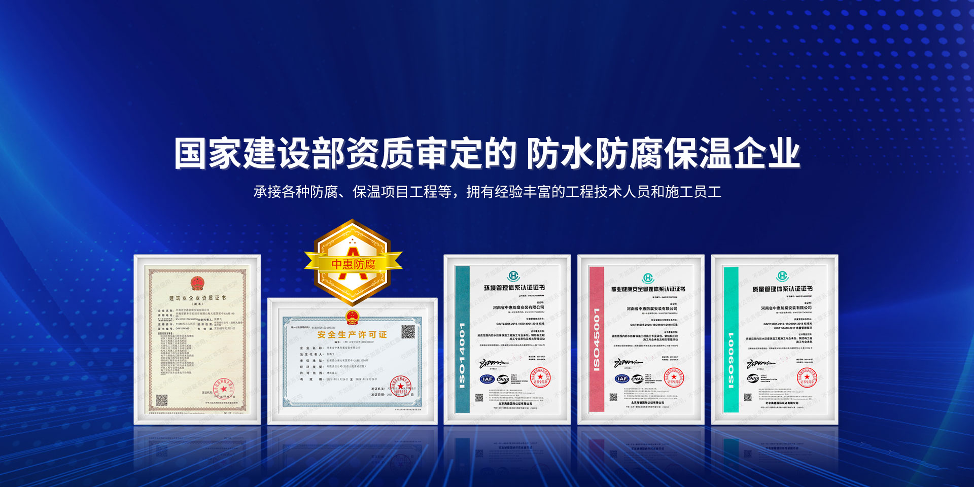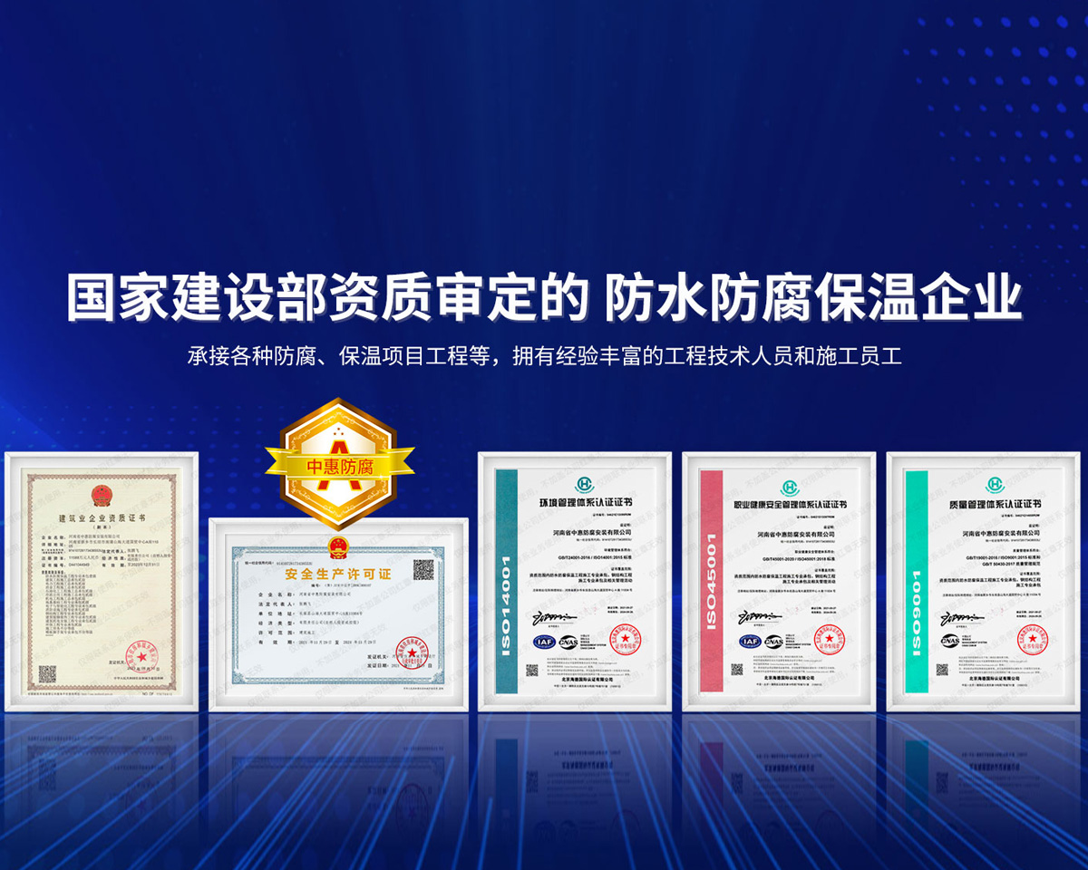 公司經營范圍:防水防腐保溫工程;消防設施工程;建筑裝修裝飾工程;建筑機電安裝工程;電力工程;建筑工程;石油化工工程;工業清洗工程;油罐清洗工程;鋼結構工程;環保工程;模板腳手架工程;電纜防火封堵、防污閃噴涂、外墻外保溫工程;各類施工勞務作業;設備維修、船舶鉚焊、涂裝;電力工程材料、建材、防水材料、防火材料、防腐保溫材料銷售,并相繼通過了GB/T19001-2008idtISO9001:2008GB/T50430-2007質量管理體系認證證書。GB/T24001-2004idtISO14001:2004環境管理體系認證證書。GB/T28001-2011idtOHSAS18001:2007職業健康安全管理體系認證證書。公司是中國防腐蝕于防護協會、中國施工企業管理協會、電力協會和中國鋼結構防水協會會員單位?! 」镜慕洜I業務涵蓋了石油、化工、電力、冶金、煤炭、船舶、國防、燃氣、水利、環保、交通運輸、航空及國防軍工和輕紡市政等行業的防腐保溫絕熱設備。鋼結構安裝、防火、防水、金屬噴鍍、聚脲噴繪、陰極保護、防滲透堵漏、玻璃鋼及各種磚版材料襯里、橡膠襯里、煙氣硫和耐酸溶劑腐蝕等工程施工。公司連續十年榮獲“省市先進施工企業”“安全生產先進單位”“重合同,守信用企業”和“AA***資質企業”的稱號。2000年被命名為市級文明單位,2002年被國家工商行政管理局命名為“重合同,守信用的企業”、被中國工業防腐蝕技術協會命名為“防腐蝕企業,能源節約及環境保護領域有豐富的經驗和***的業績。工程一次交驗合格率100%。其中攀枝花鋼鐵公司煉鐵廠四號高爐及熱風爐防腐工程、上海寶鋼公司煤氣柜防腐工程、撫順石油一廠裝置防腐項目、齊魯石化公司稀烴廠高塔防腐工程、吉林化學工業公司煉油廠油罐防腐工程、天津石化熱電廠六號爐頂棚聯絡管保溫工程、大慶油田(太倉)力神泵業工程、中國化學工程第十一建設工程、中原油田勘探局工程、中國石化銷售有限公司華北分部、魯皖輸油管道工程、貴州開磷息烽合成氨工程、陜西黃陵煤化工程、中國石油天然氣西部管道塔里木輸油工程、邯鋼集團邯寶鋼鐵公司煉鐵工程、德州供電工程、吉寶(南通)船廠工程,偃師華潤熱力工程、鄭州熱力總公司。 河南省中惠防腐安裝有限公司愿以豐富的施工經驗,***的技術,***的設備,***的管理,***的服務,竭誠為國內外廣大的用戶提供***滿意、******的工程作品?! ∥夜驹概c國內外同仁一道,團結協作,共同推進防腐蝕行業發展! 公司地址:河南省長垣縣建設路北段360號 固定電話:0373-8866488 郵編:453400 網址:http://www_zhff_com_cn.8m6m.com